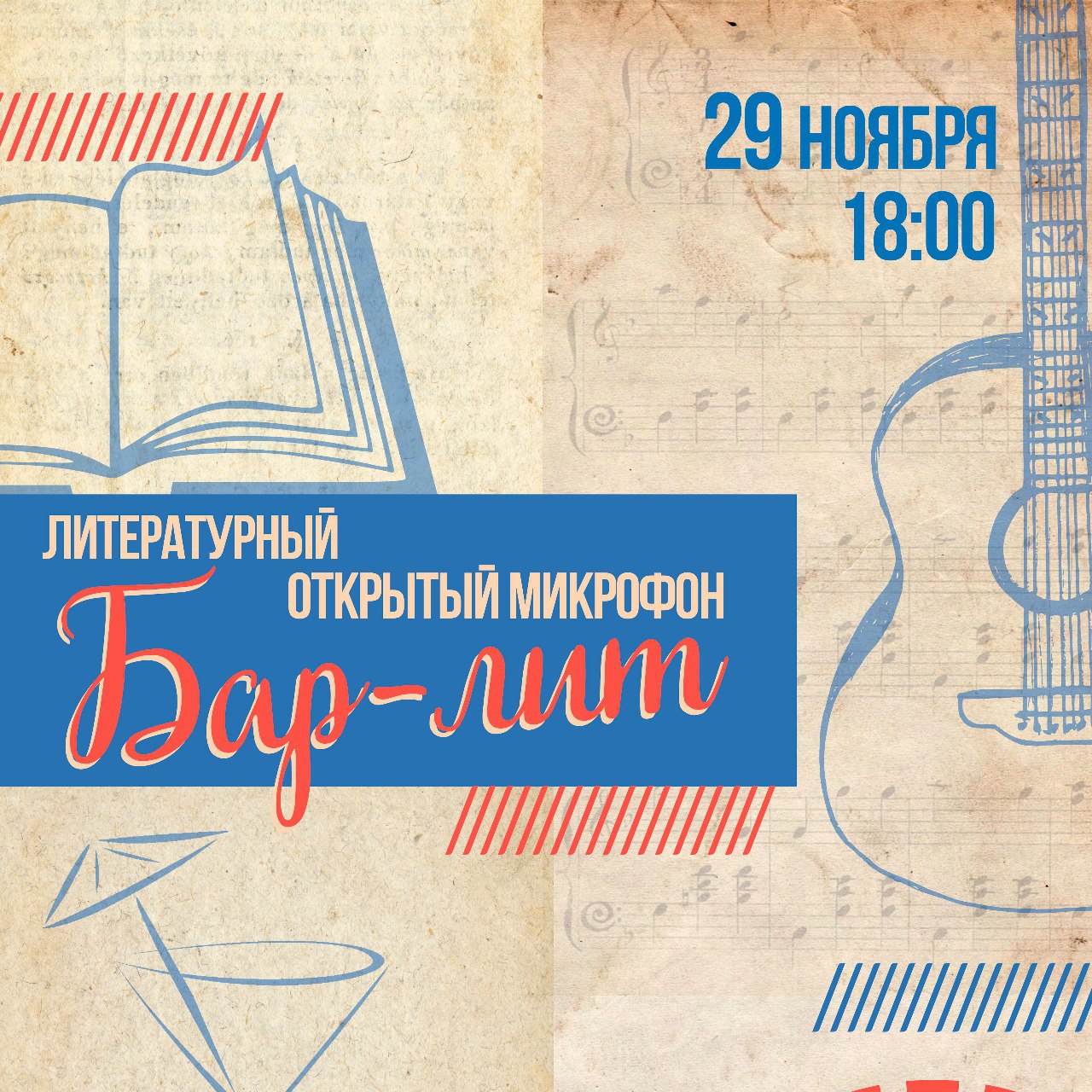 На бар-лите работает открытый микрофон и бар, с бесплатными напитками.