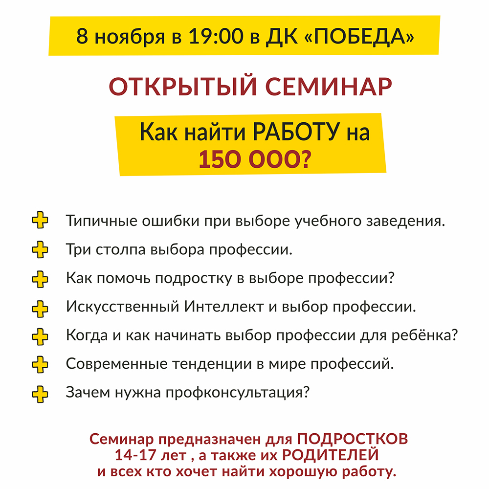 Открытый семинар для подростков и их родителей по профессиональному самоопределению от школы скорочтения "Инкубатор интеллекта".