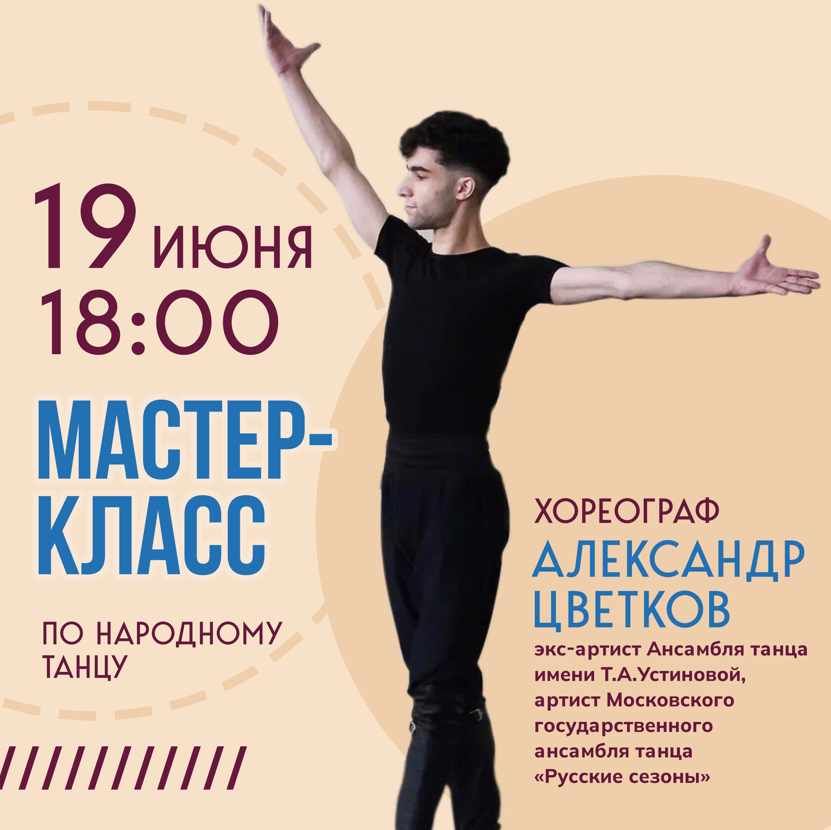 Мастер класс ведет Цветков Александр Алексеевич - экс-артист ансамбля танца имени Т.А. Устиновой, артист Московского государственного ансамбля танца "Русские сезоны"