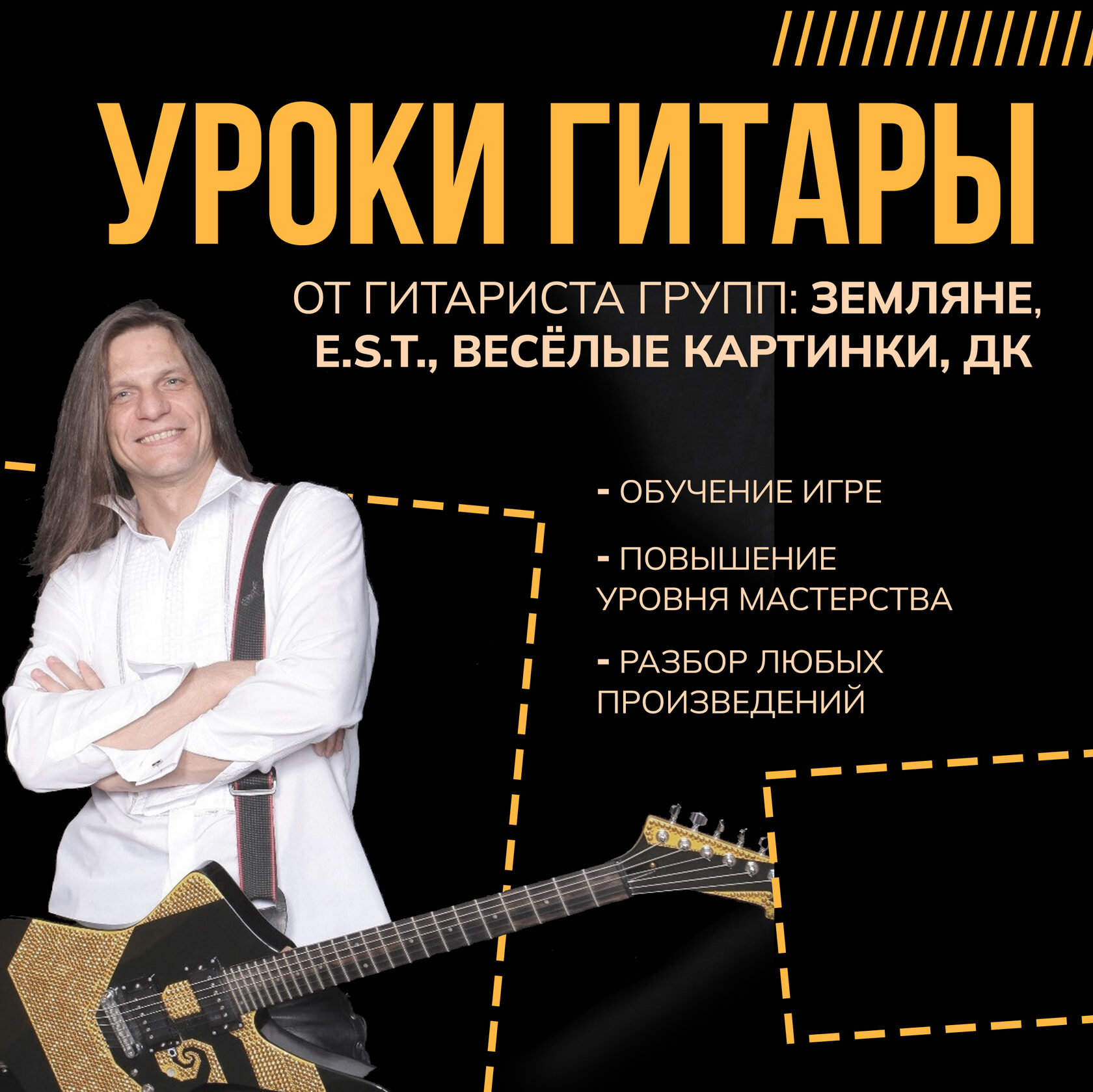 На свой бесплатный мастер- класс вас приглашает известный гитарист, участник групп ЭСТ и "Земляне" - Александр "Плежа" Евсюков.